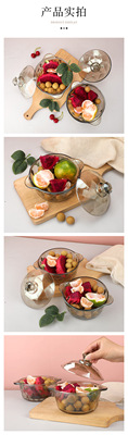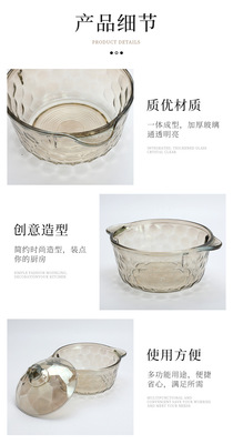 茶色玻璃碗琥珀色鑽石煲泡麵碗帶蓋沙拉碗家用大號雙耳碗水果燙盆