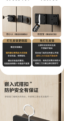 免打孔密碼櫃鎖防盜雙開門玻璃衣櫃門鎖抽屜鎖通用冰箱鎖扣柜子鎖