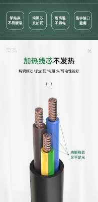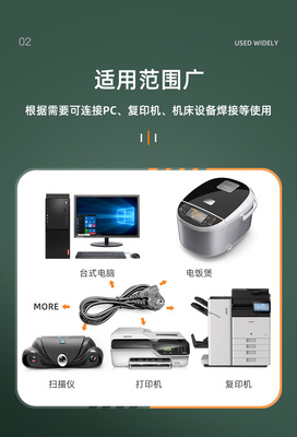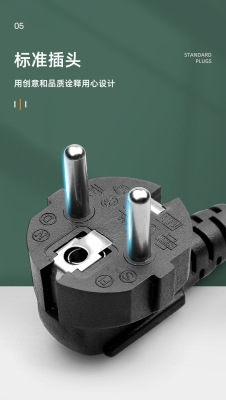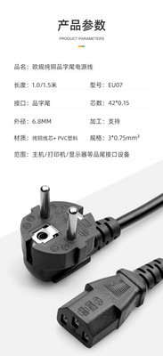 3-core 0.75 square 1-meter 1.5-meter Euro plug power cord for computer, printer, and monitor three-prong wire