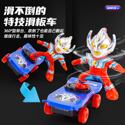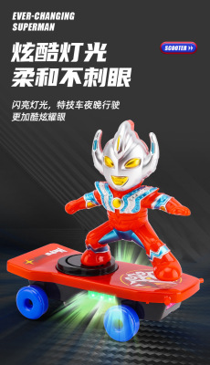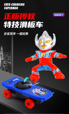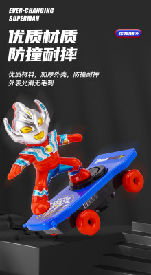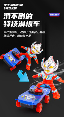 Superman Multifunctional Stunt Scooter Toy Electric Omnidirectional Lighting Music Spinning Rolling Car for Kids Gift Wholesale