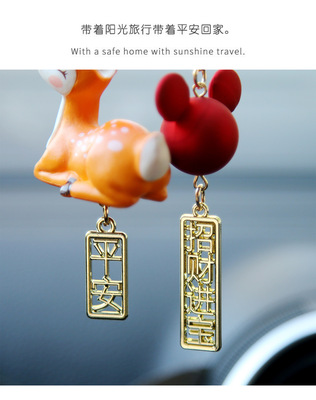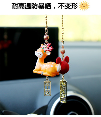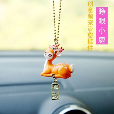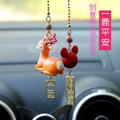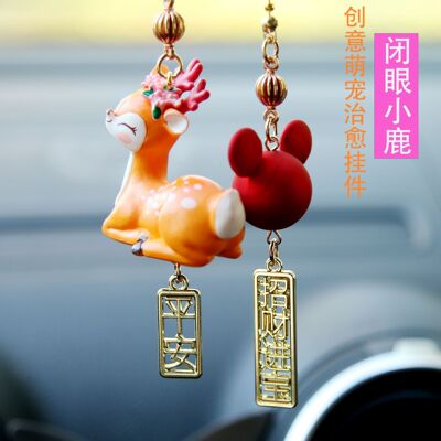 創意車載掛件一路平安可愛小鹿汽車個性後視鏡吊墜高檔可愛 裝飾