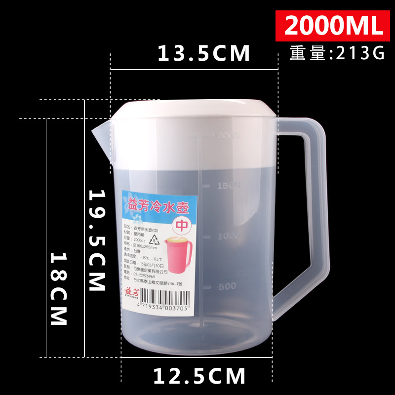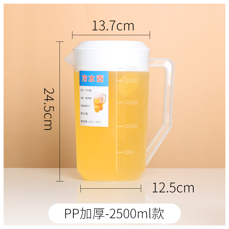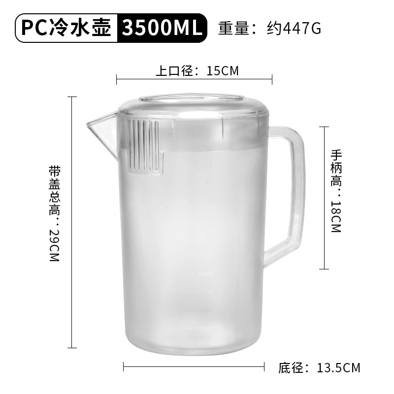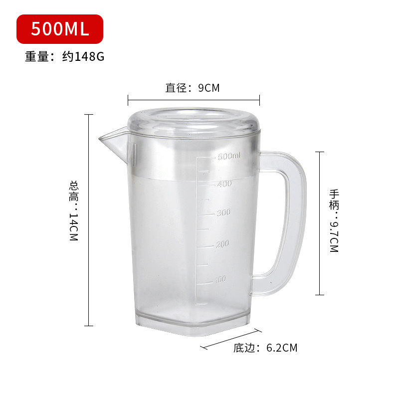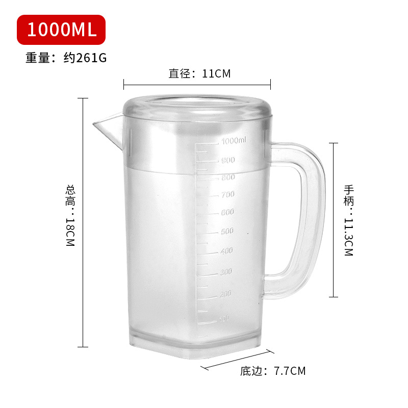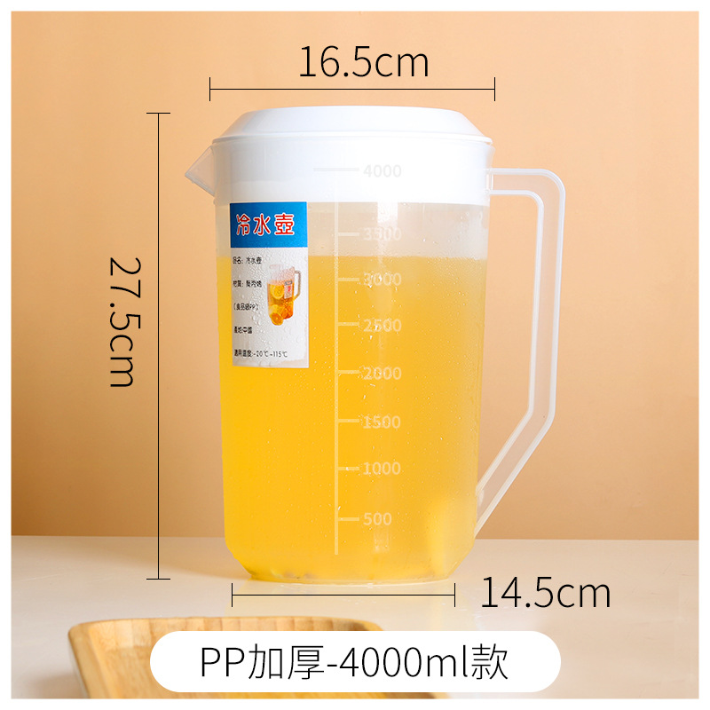 Thickened plastic cold water pitcher, heat-resistant and high-temperature durable—ideal for home use or milk tea shops; 5L large-capacity measuring cup with clear markings for cold beverages.