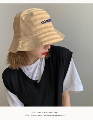 ins trendy brand letter fisherman hat women's spring and summer sunshade wide brim face small basin hat Korean style student couple sun hat