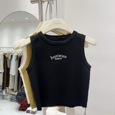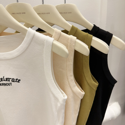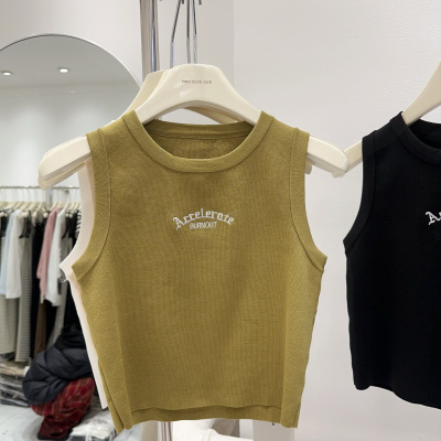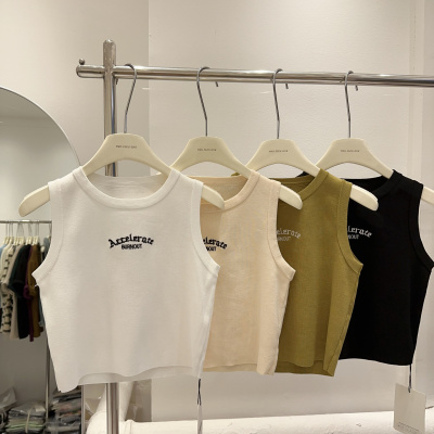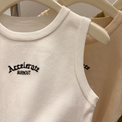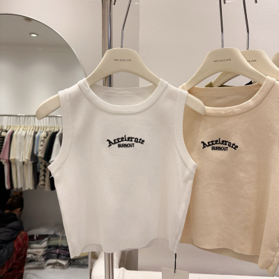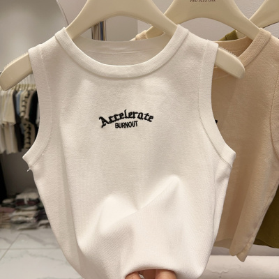 Summer New American Retro Slimming Women's Fashion Letter Embroidered Tight Short-sleeved Outerwear Tank Top