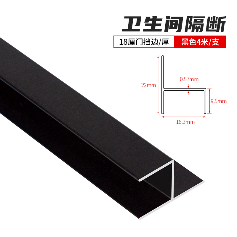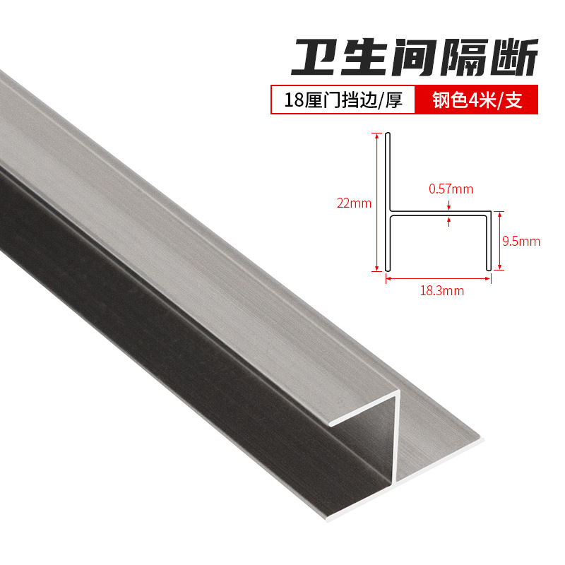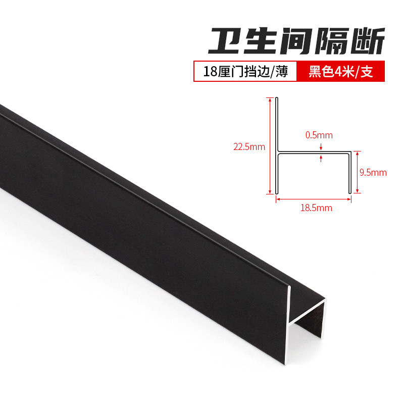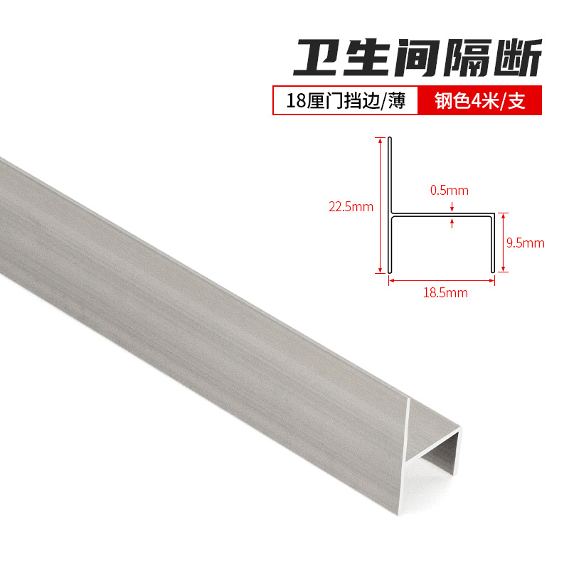 Bathroom partition aluminum H-shaped door stopper, toilet and restroom 18mm board edge sealing strip, steel-colored aluminum alloy door stopper.
