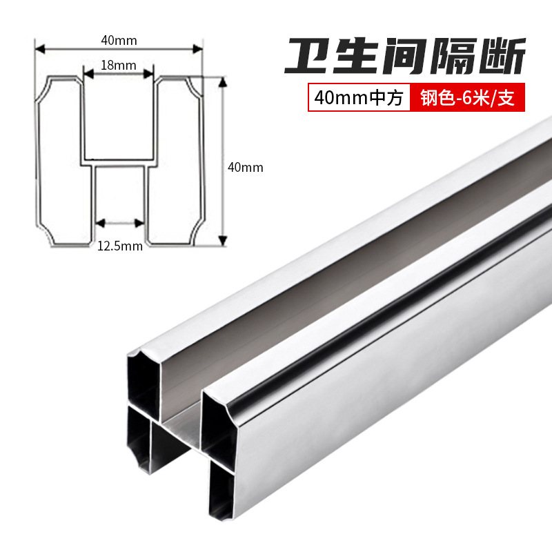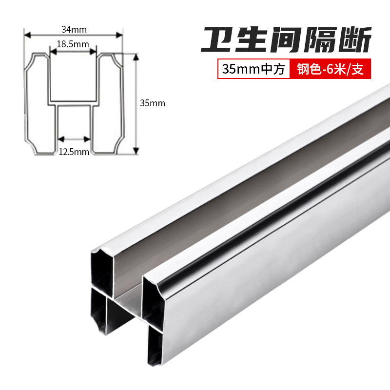 Partition door pull rod bathroom aluminum profile upper beam rod top rod 35 large square cross beam rod aluminum alloy pull rod