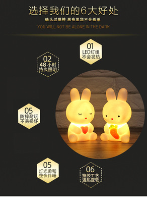 Custom 2024 New Small Night Light Creative Cartoon Cute Rabbit Children's Light-Up Toy Girl Friend Gift