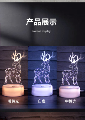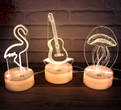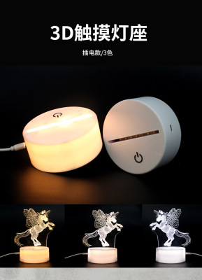 3D night light plug-in touch three-color acrylic night light base LED bedside light USB decorative light colorful light