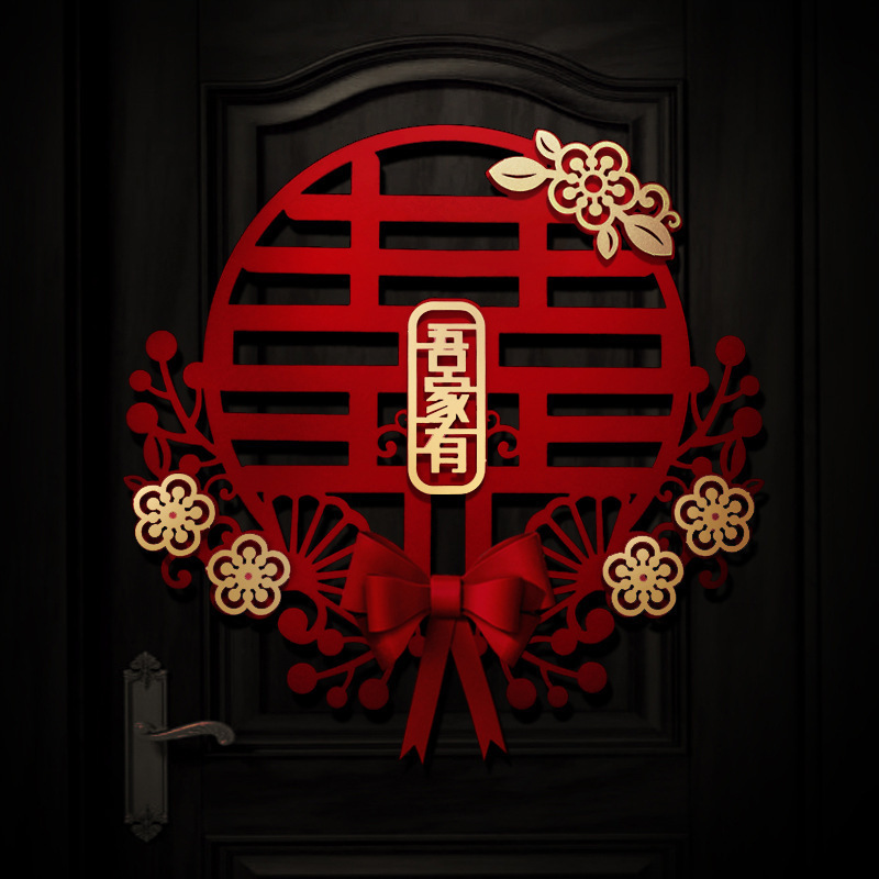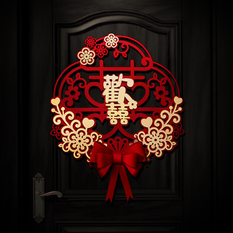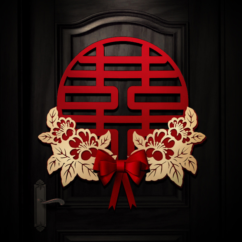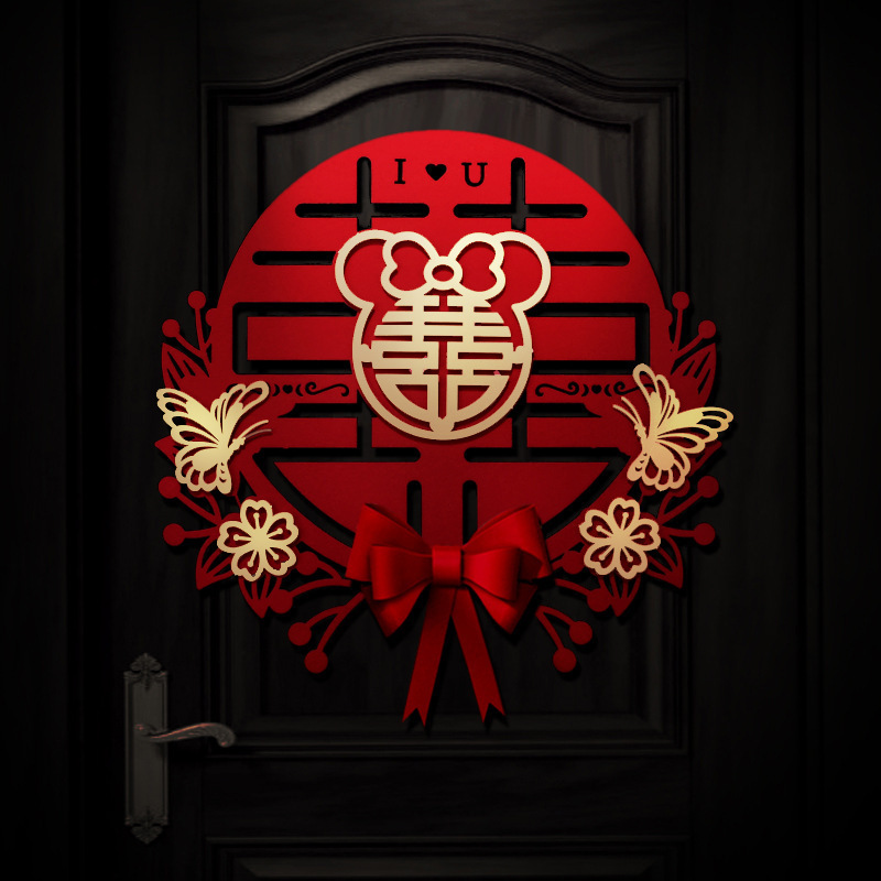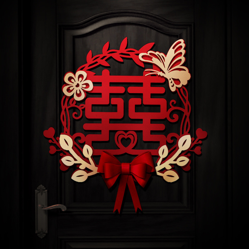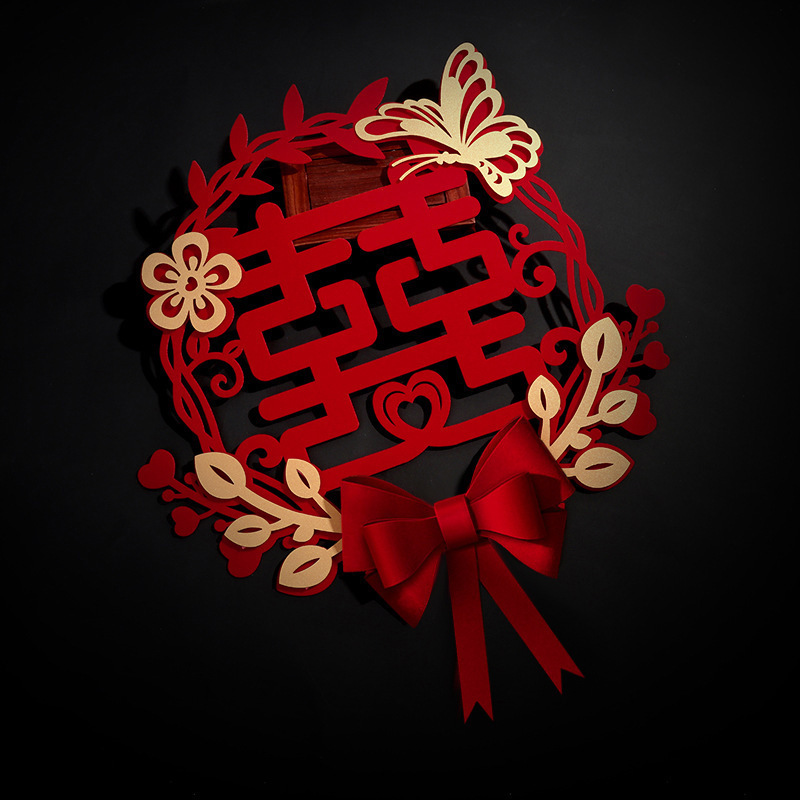 Three-dimensional oversized cardboard happy word door stickers with bow flocking wedding supplies wholesale wedding room living room decoration stickers layout
