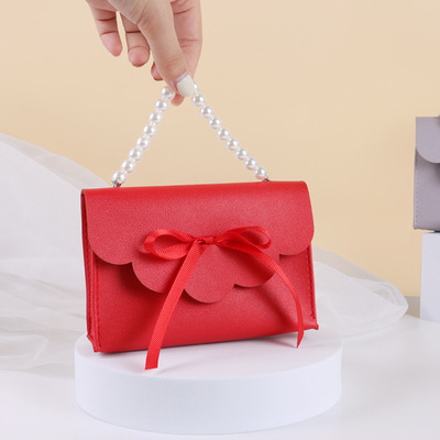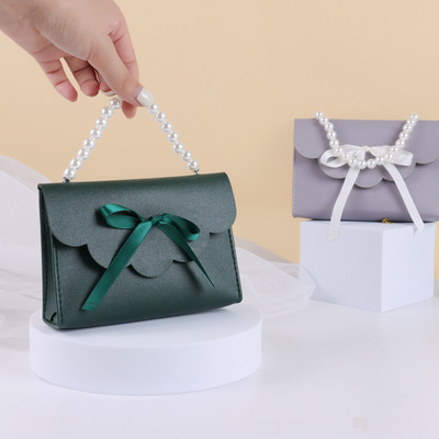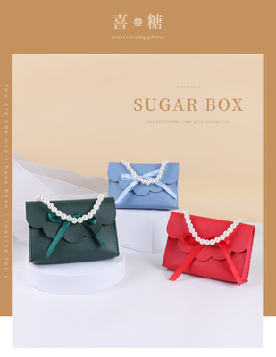 Wholesale Hand-held European High-end Creative Wedding Favors Candy Box Packaging Bag for Leather Pearl Candy Boxes