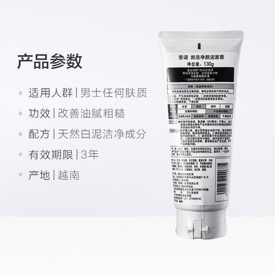 UNO/吾諾男士洗面奶炭活淨顏潔面膏130g深入清潔清爽批發代發