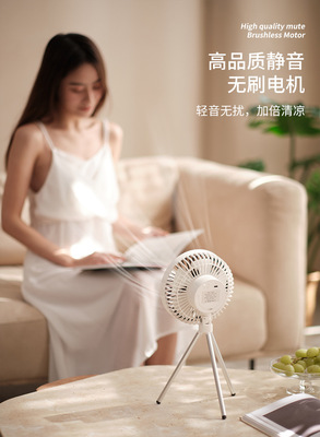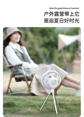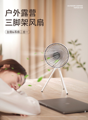 New camping fan tripod convenient hanging small ceiling fan lamp dual-purpose small outdoor rechargeable electric fan cross-border