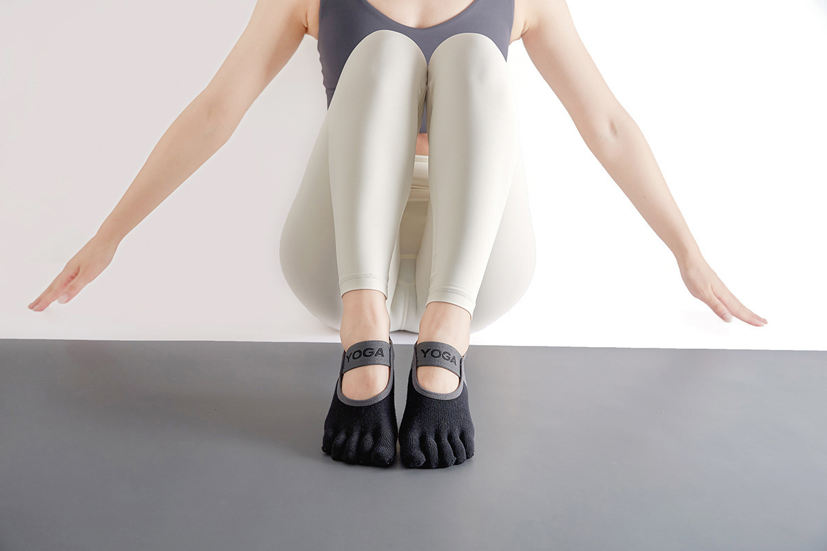 Wholesale mid-calf sports yoga socks for women, dance, Pilates, fitness, non-slip, deodorant toe socks, practice split toe socks