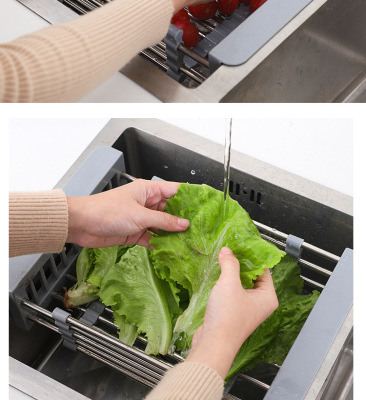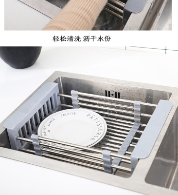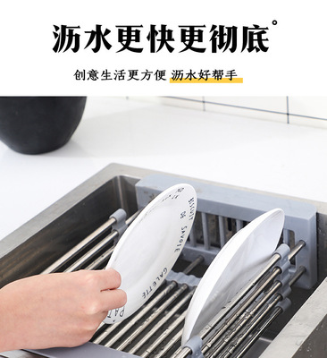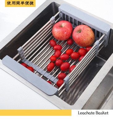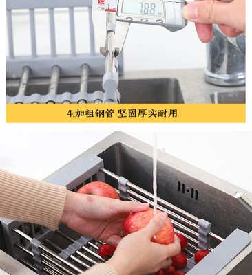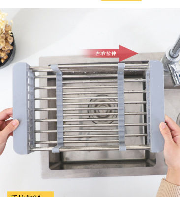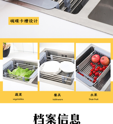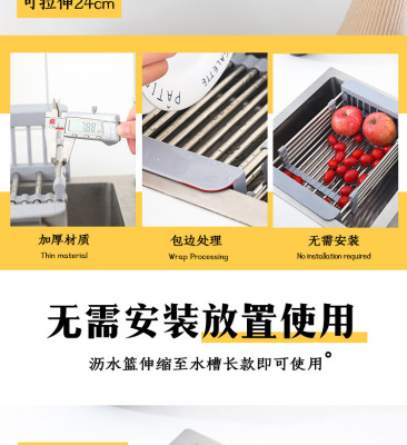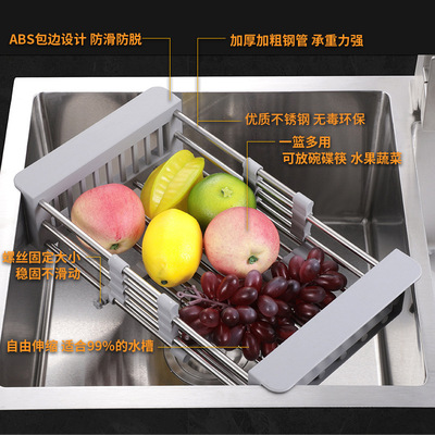 Telescopic stainless steel kitchen drain rack, sink drain basket, multi-functional fruit dish rack, vegetable basket, drain bowl rack