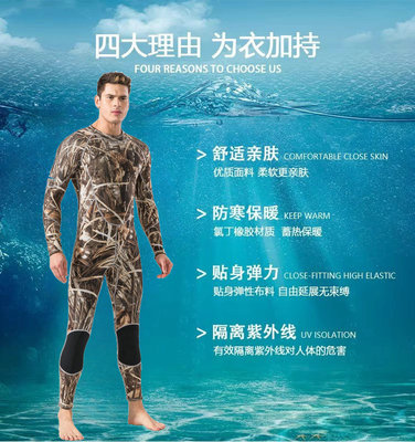 Men's 3mm Camouflage Insulated Wetsuit for Free Diving, Deep Diving, Fishing, Hunting, Seaweed Harvesting, and Cold Rescue
