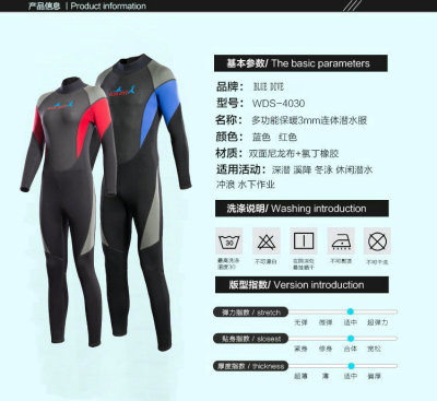One-piece wetsuit 3mm wetsuit for men, warm sea winter swimsuit, women's paddle board, windsurfing, cold-proof wetsuit, wetsuit