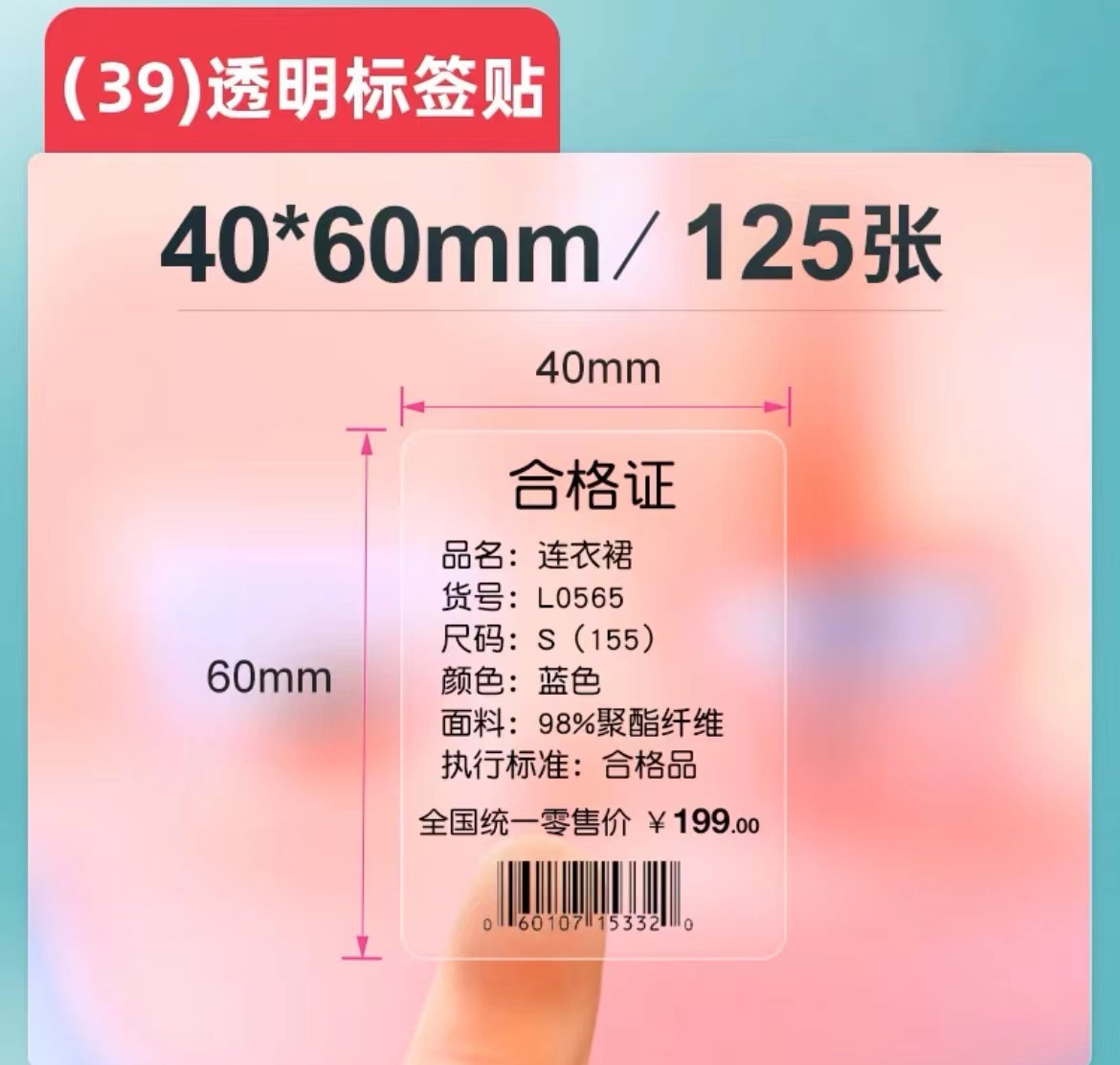 Specifications: Transparent label paper 40*60mm*125 sheets