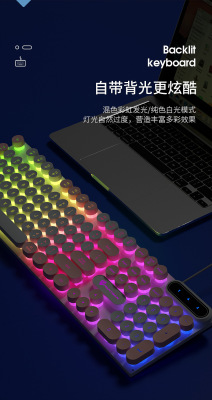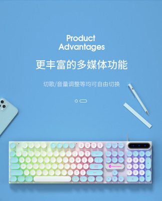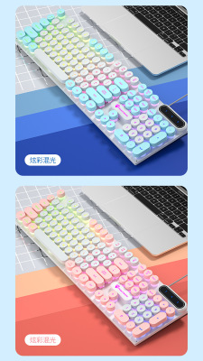 Pansen PK100 punk e-sports keyboard game office wired peripherals retro round multi-color computer USB keyboard