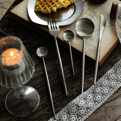 葡萄牙304不鏽鋼北歐個性啞光西餐刀叉甜品勺牛排刀餐具套裝批發