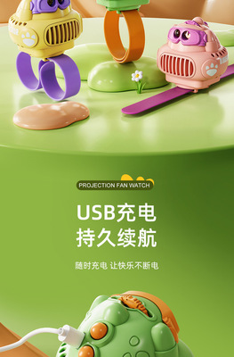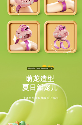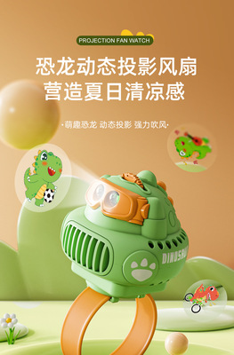 Children's Dinosaur Projector Watch Fan USB Charging Mini Portable Cartoon Handheld Small Fan Student Gift
