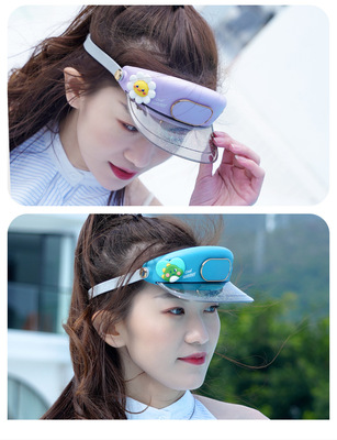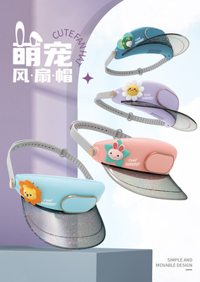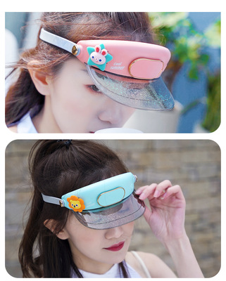 Cartoon visor hat leafless small fan USB charging student portable children's travel outdoor portable fan