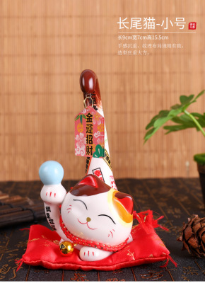 Long tail cat lucky cat large ornament Caiyuan Guangjin store opening gift ceramic cat gold luck lucky cat