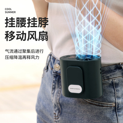 New Outdoor Hanging Waist Fan USB Charging Portable Travel Neck Fan Powerful Charging Bag Small Fan