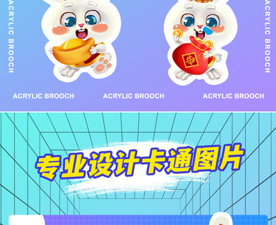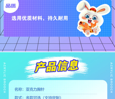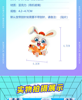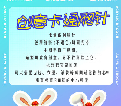 Acrylic Brooch, Cute Cartoon Rabbit, Schoolbag Pen Case, Clothing Accessory, Keychain, Wholesale, Instagram Trendy Rabbit Badge