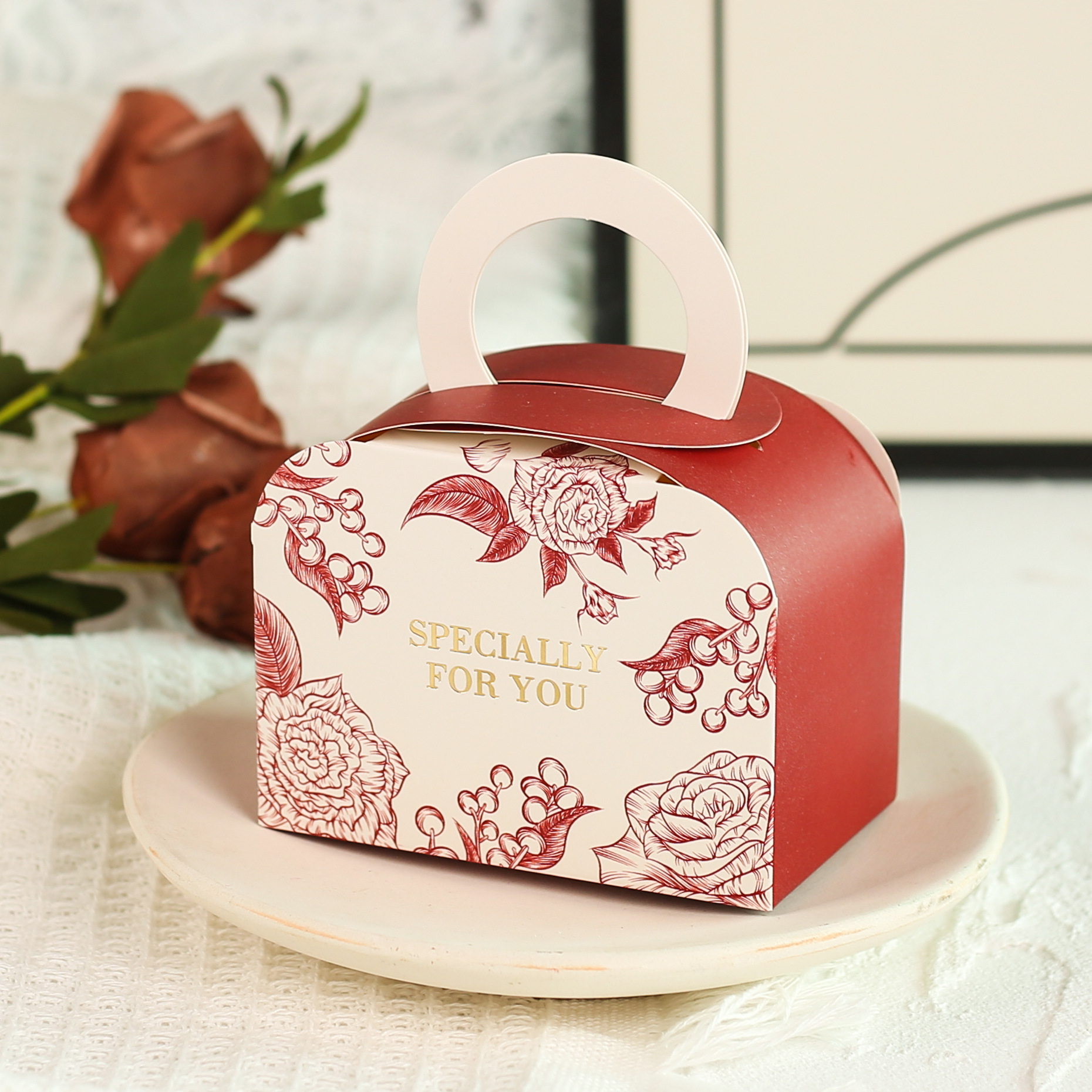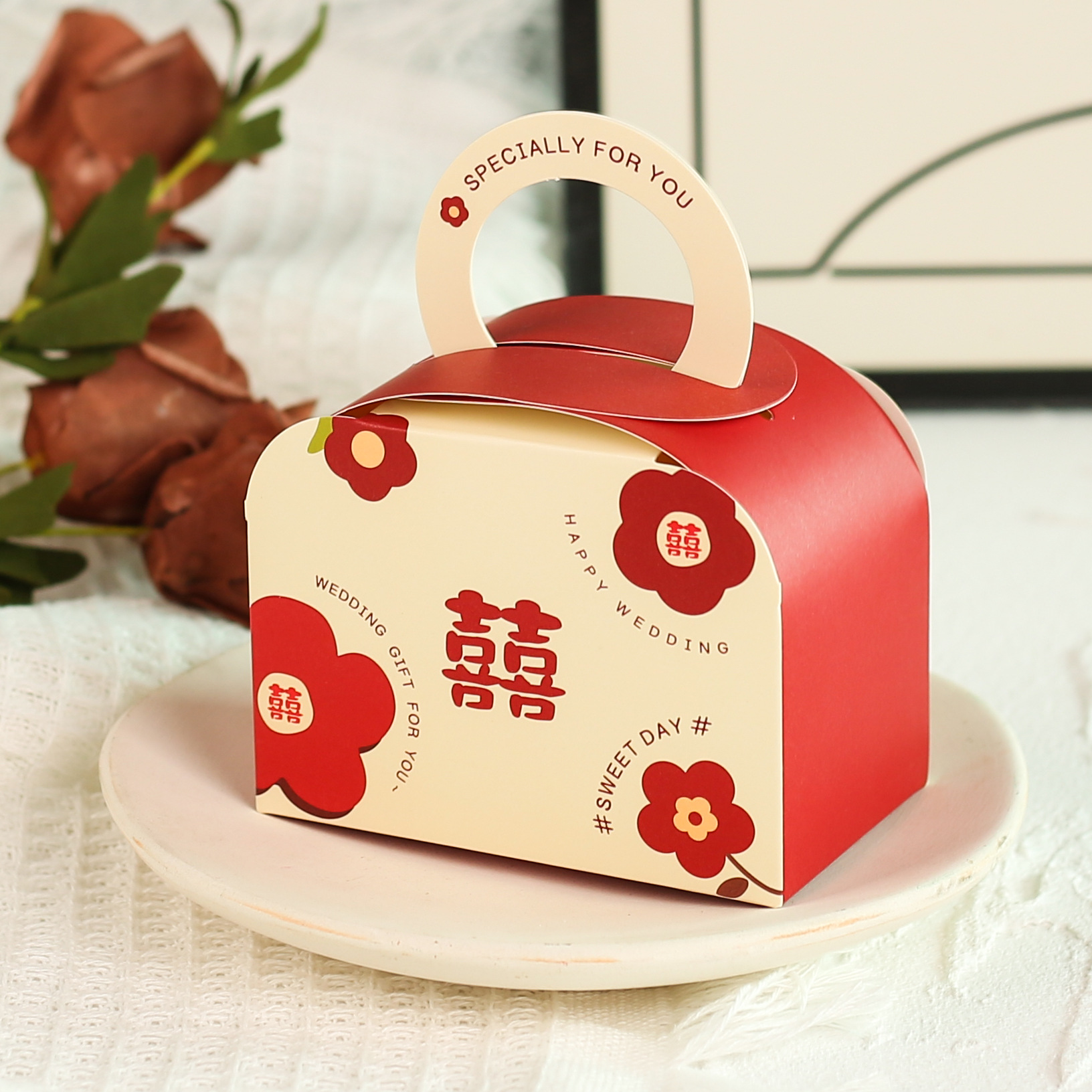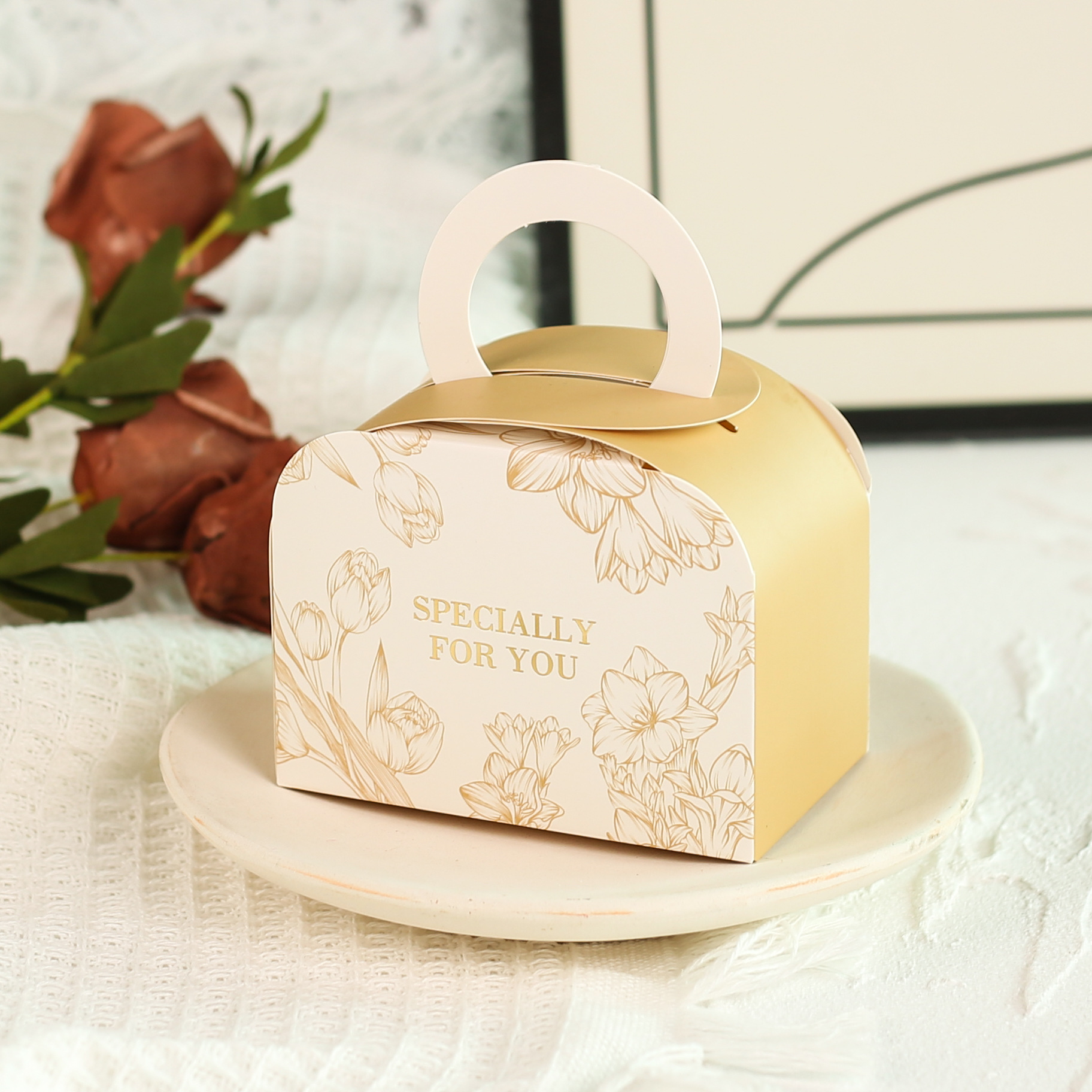 2024 new creative hand-painted ins style small fresh rose orchid lily iris cherry blossom tulip wedding candy box