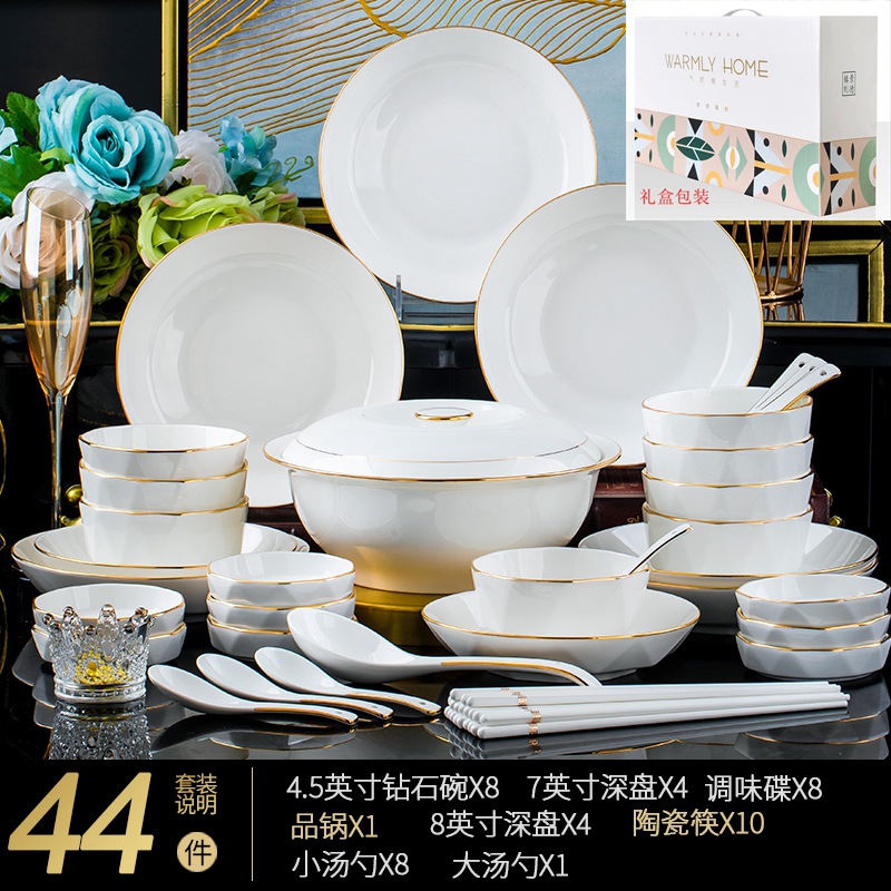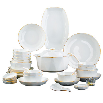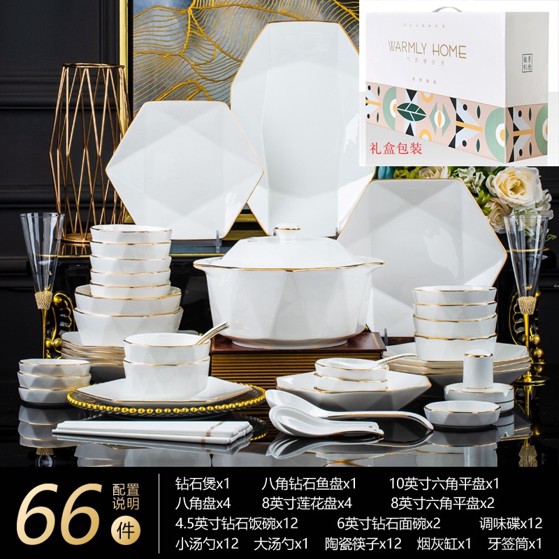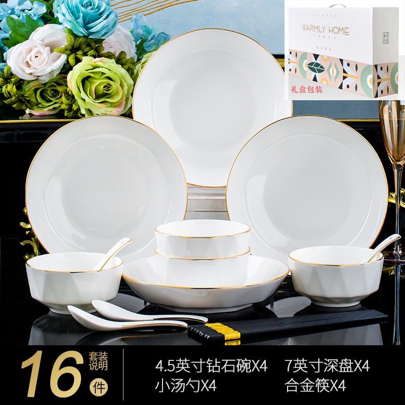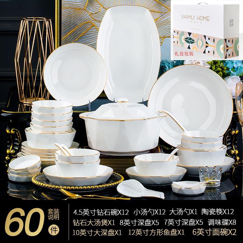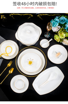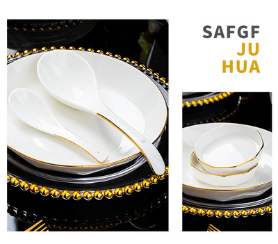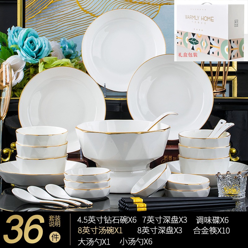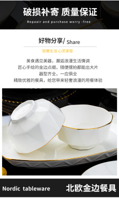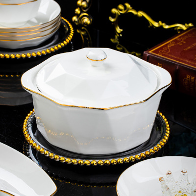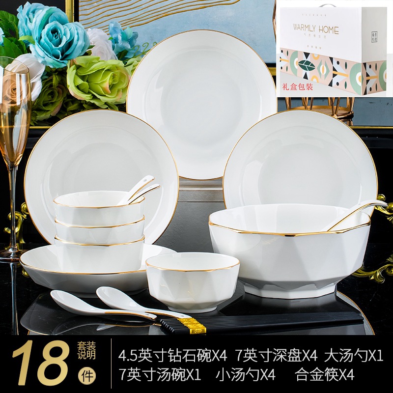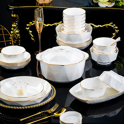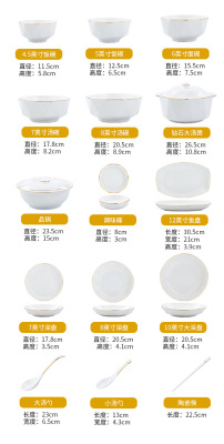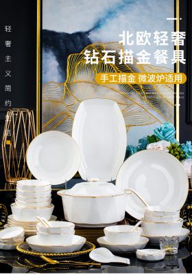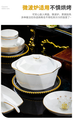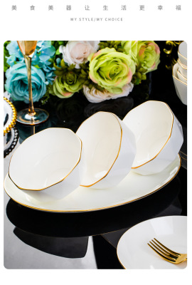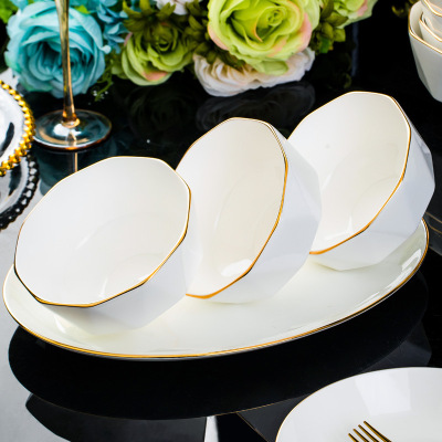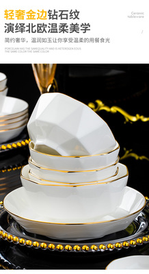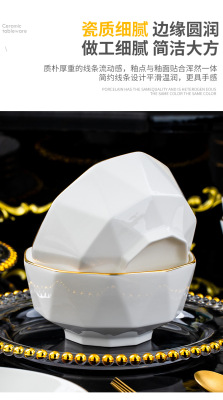 Jingdezhen ceramic tableware set rice bowl noodle bowl large soup bowl simple diamond bowl hand-painted gold gift logo