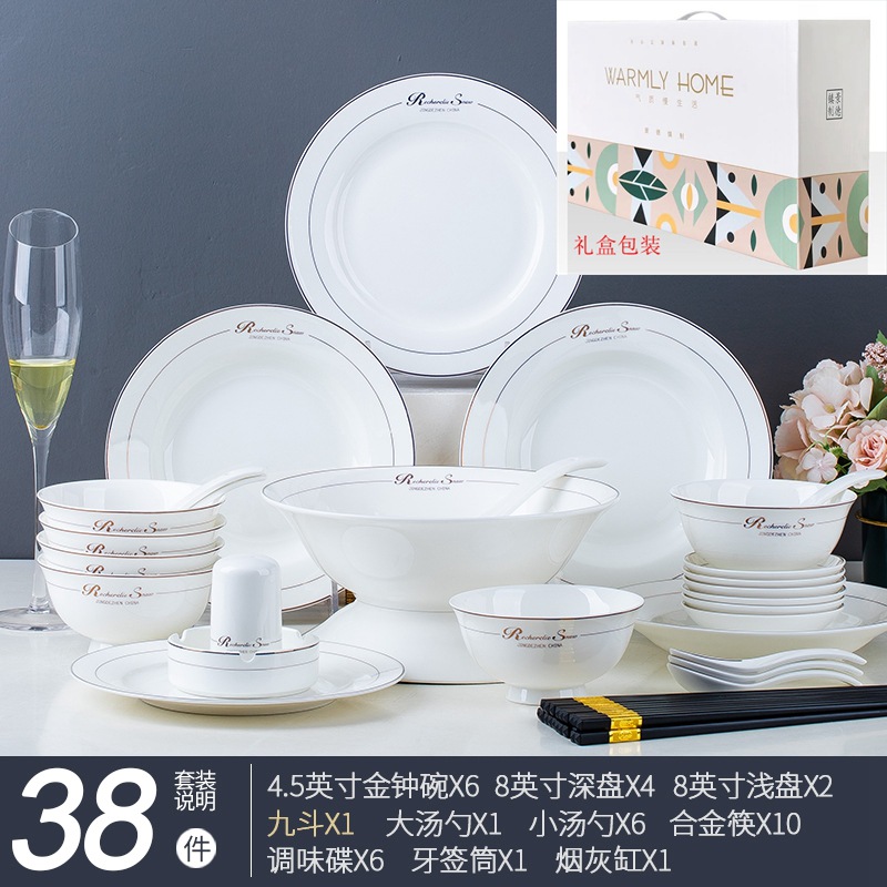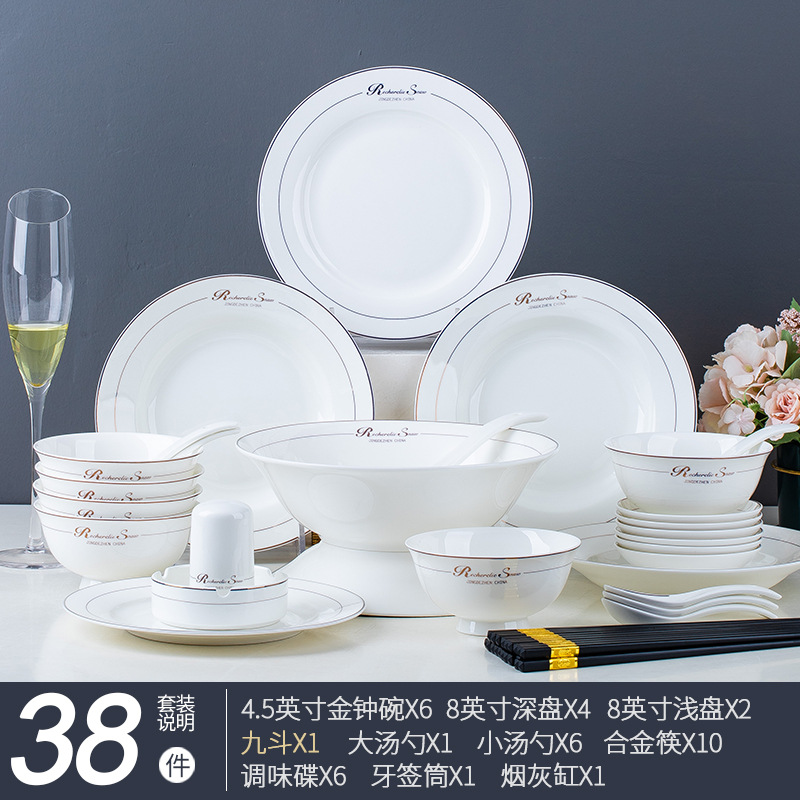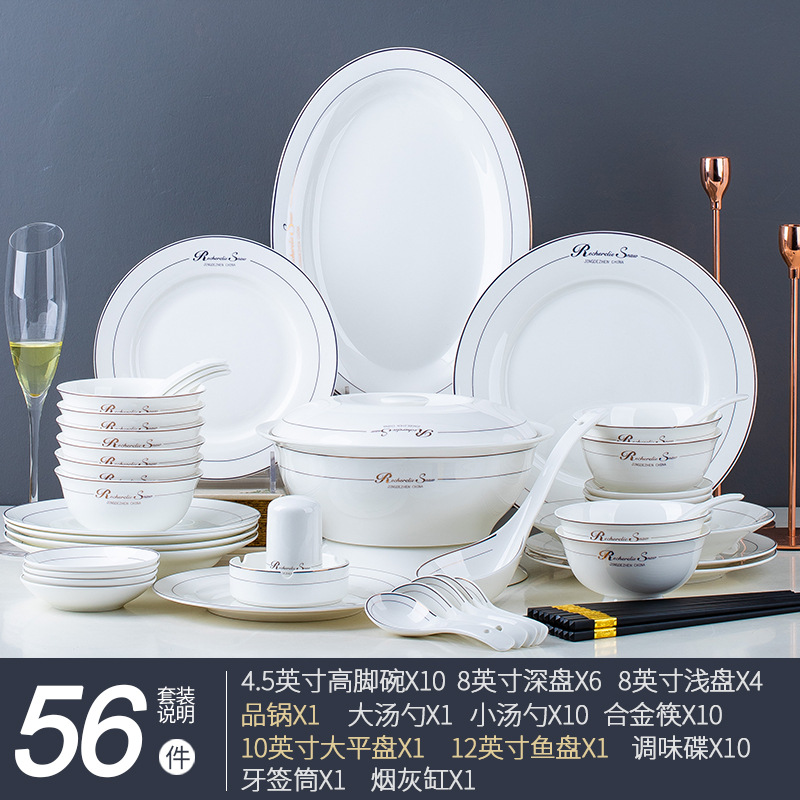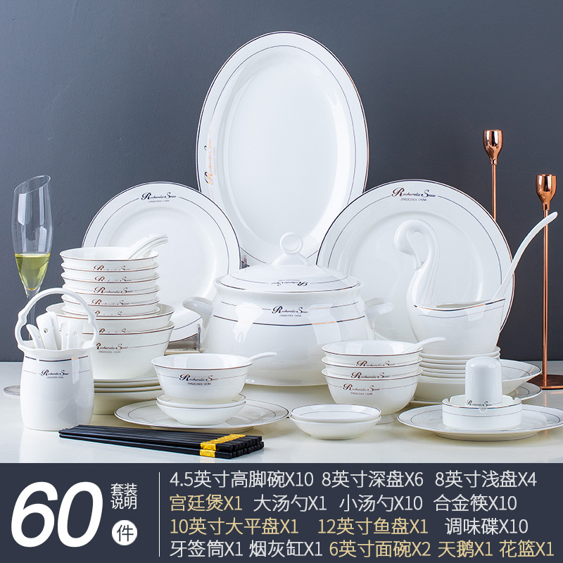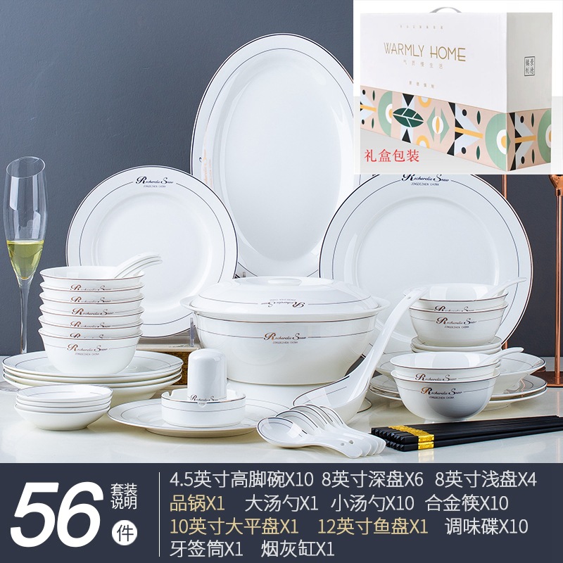 碗碟家用全套景德鎮陶瓷餐具套裝輕奢北歐式骨瓷碗筷盤子禮品批發