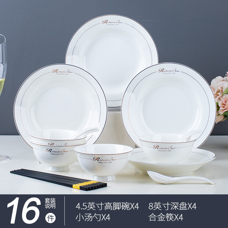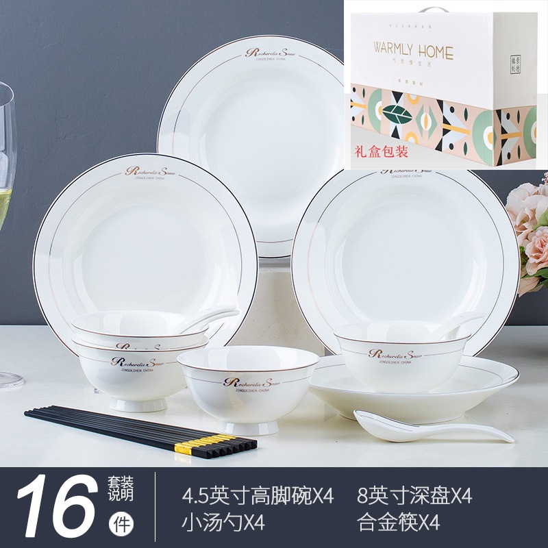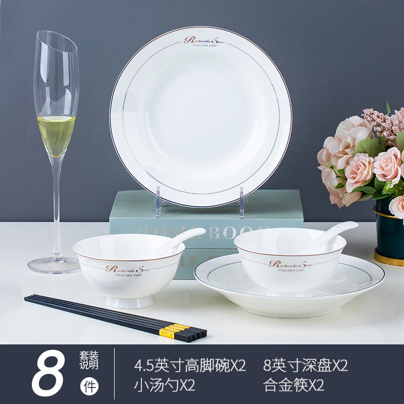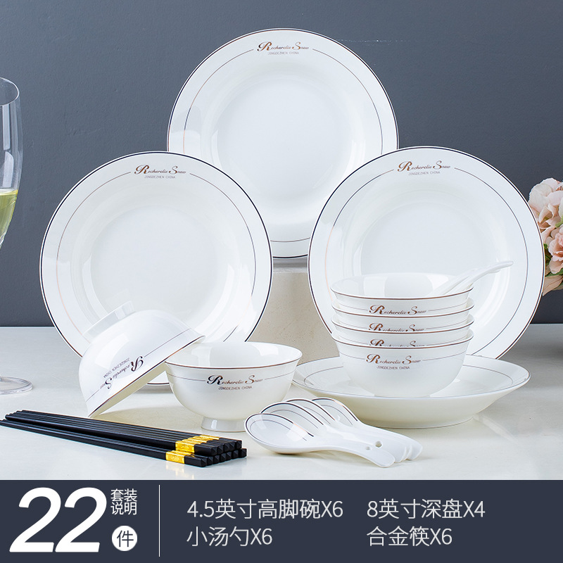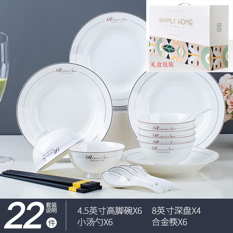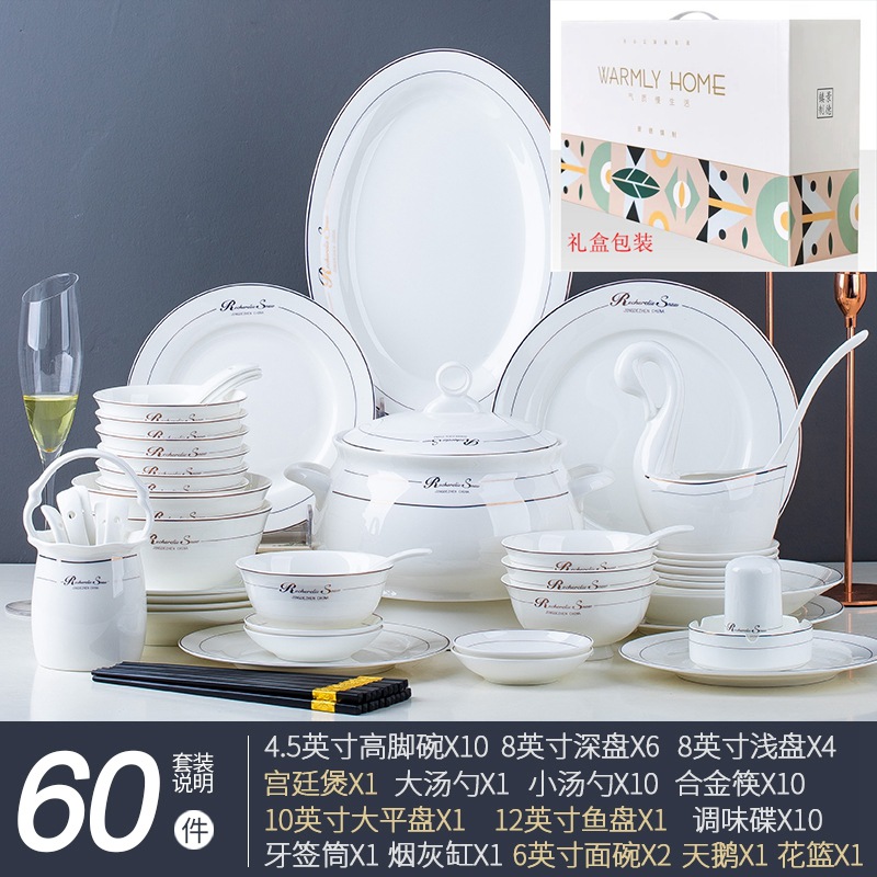 碗碟家用全套景德鎮陶瓷餐具套裝輕奢北歐式骨瓷碗筷盤子禮品批發