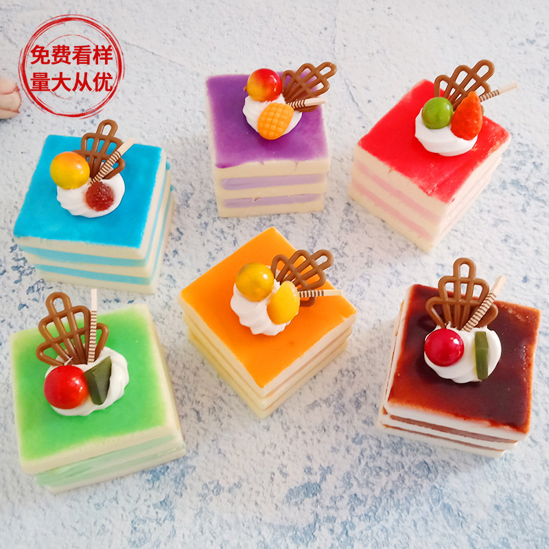 Simulation cake PU square fake cake fruit layer refrigerator magnet children's toy photography decoration display prop