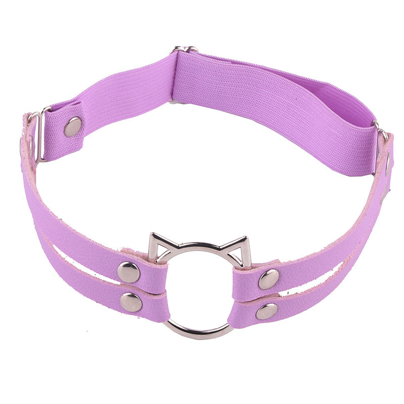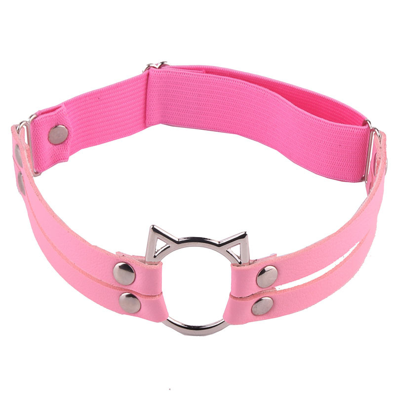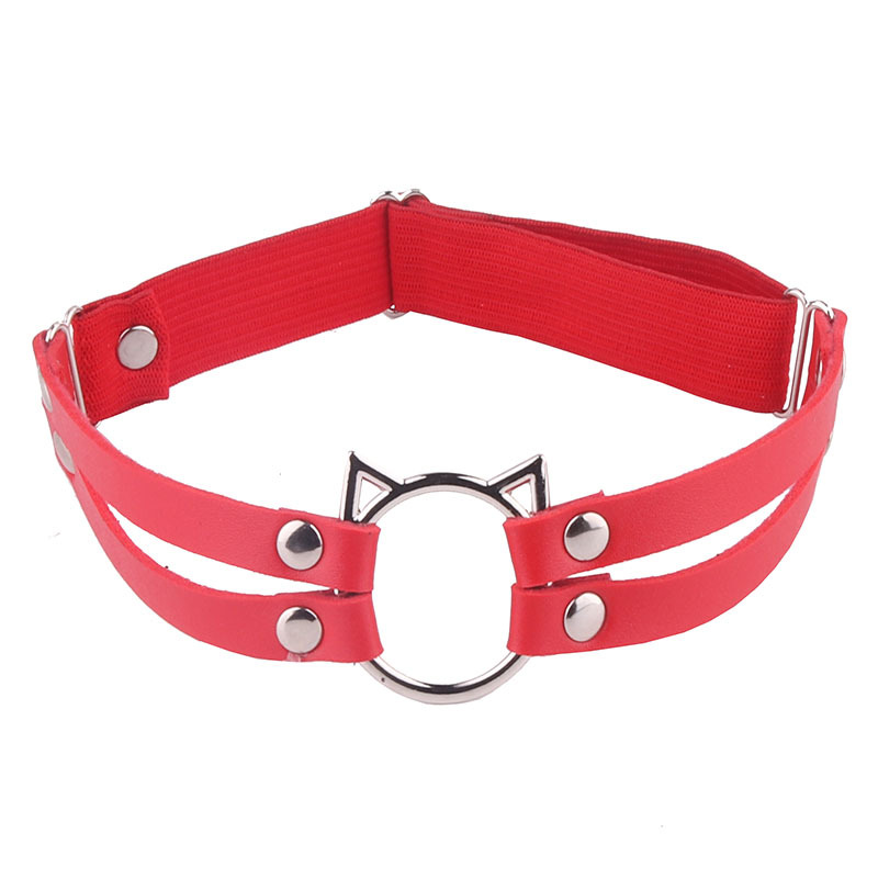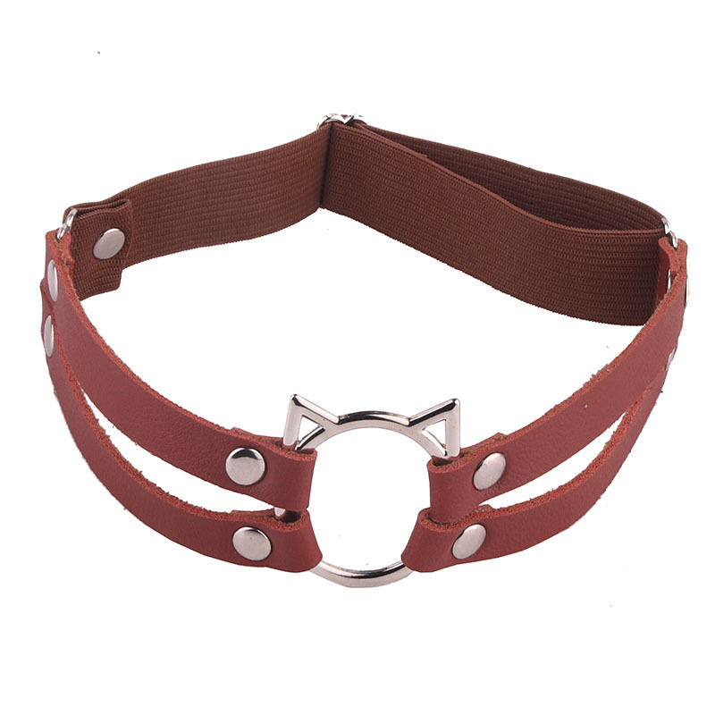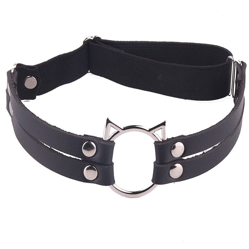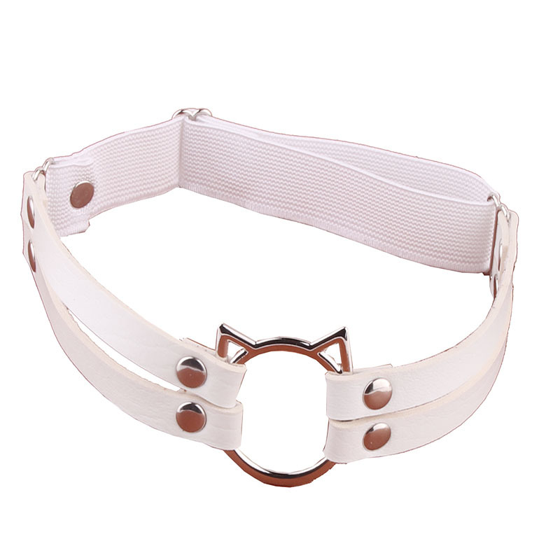Eurasian tough girls double row leather leg cuffs leg rings for street photography, sexy and playful PU cat head decoration leg chains with stockings