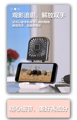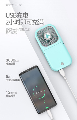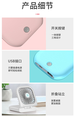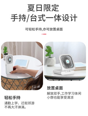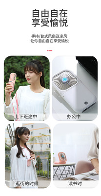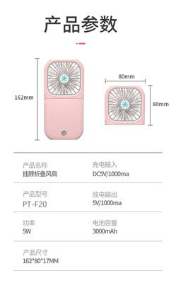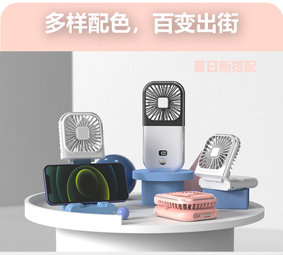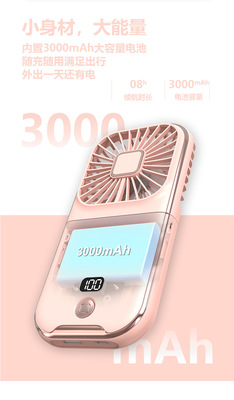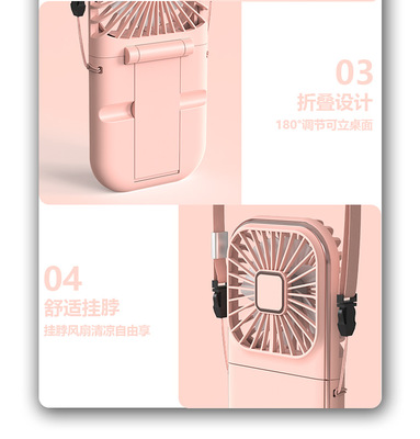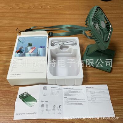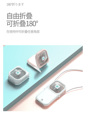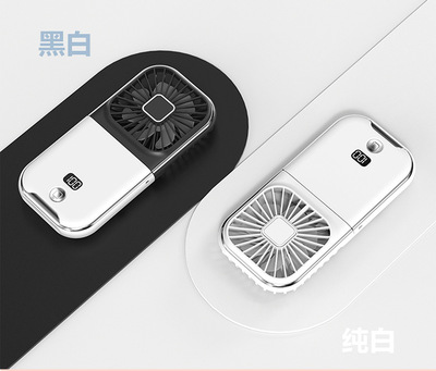 New Slim Foldable Necklace Fan USB Portable Power Bank with Digital Desk Stand Mini Fan