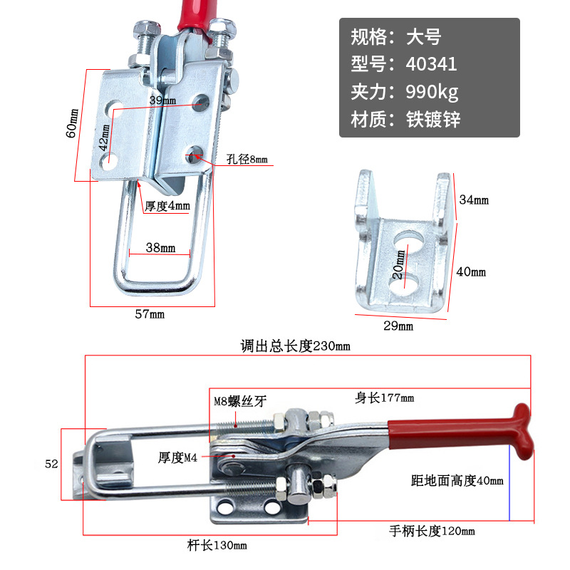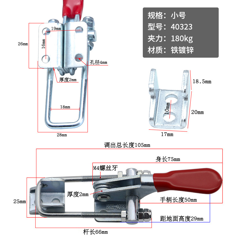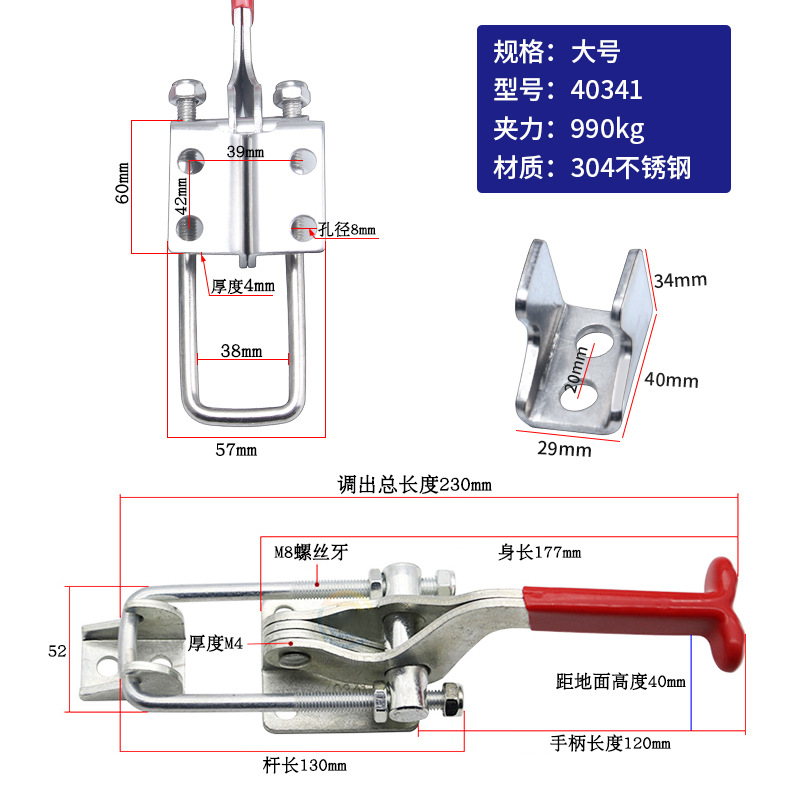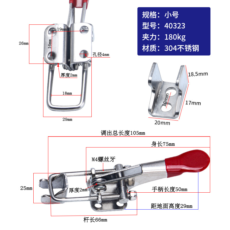 工裝夾具40323不鏽鋼快速夾 木工機床大力壓緊器翻蓋鎖扣門栓夾鉗