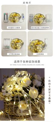 USB eight-function remote control leather wire light string LED low voltage waterproof color string light string 100LED battery box copper wire light string