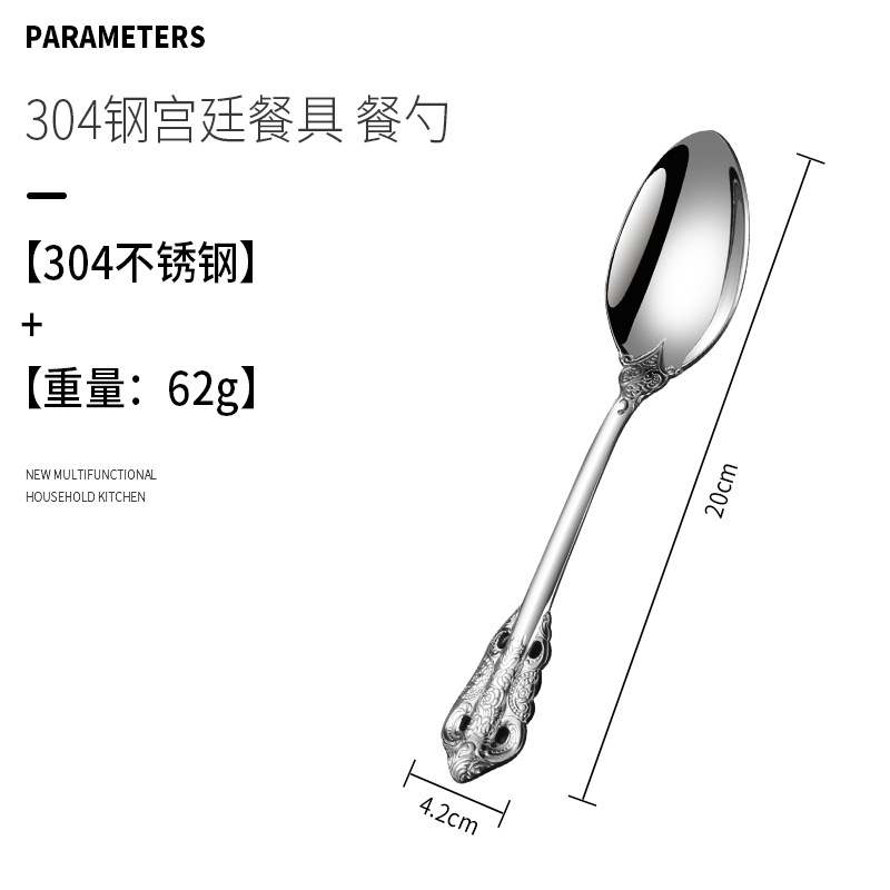 Stainless steel knife, fork, and spoon court European-style steak knife and fork set, five-piece hotel retro embossed tableware set
