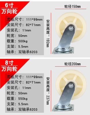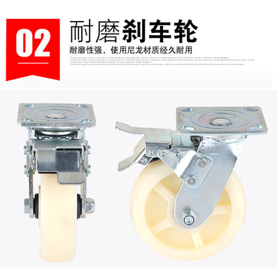 6-inch nylon swivel casters, heavy-duty 4-inch, 5-inch, and 8-inch industrial casters, push plate brake wheels, directional wheels