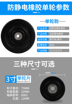 Anti-static swivel casters single wheel 3-inch conductive foot wheel 4-inch 5-inch medium suction static rubber wheel black wheel