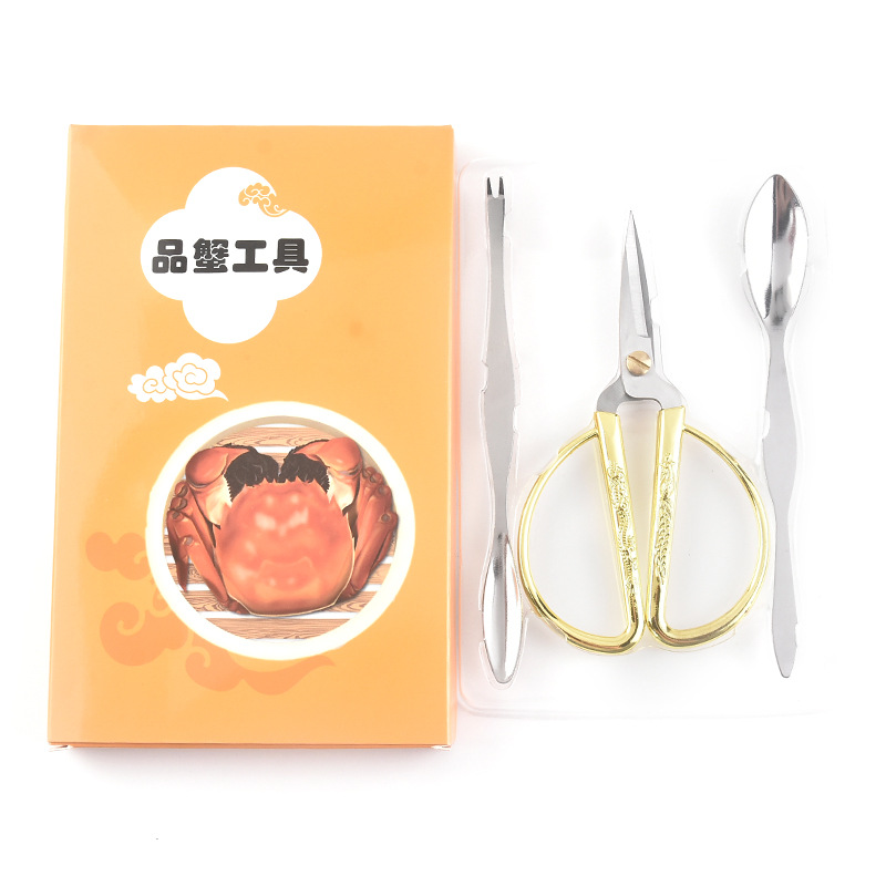 Stainless steel crab eating tools crab eight-piece three-piece set crab spoon fork crab claw clip scissors hairy crab seafood peeler