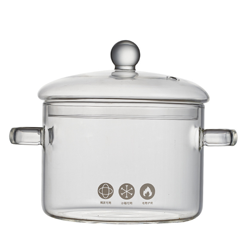 Glass instant noodle bowl, transparent glass milk pot, double high borosilicate glass soup pot, electric ceramic stove instant noodle stew pot