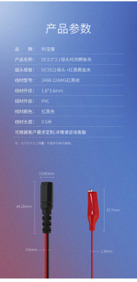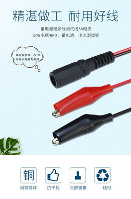Wholesale DC5521 female connector to red and black clip head test line battery charger cable battery clip power cord