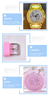 KT貓手錶卡通兒童手錶批發led發光表 果凍色軟膠夜光手錶女童韓版