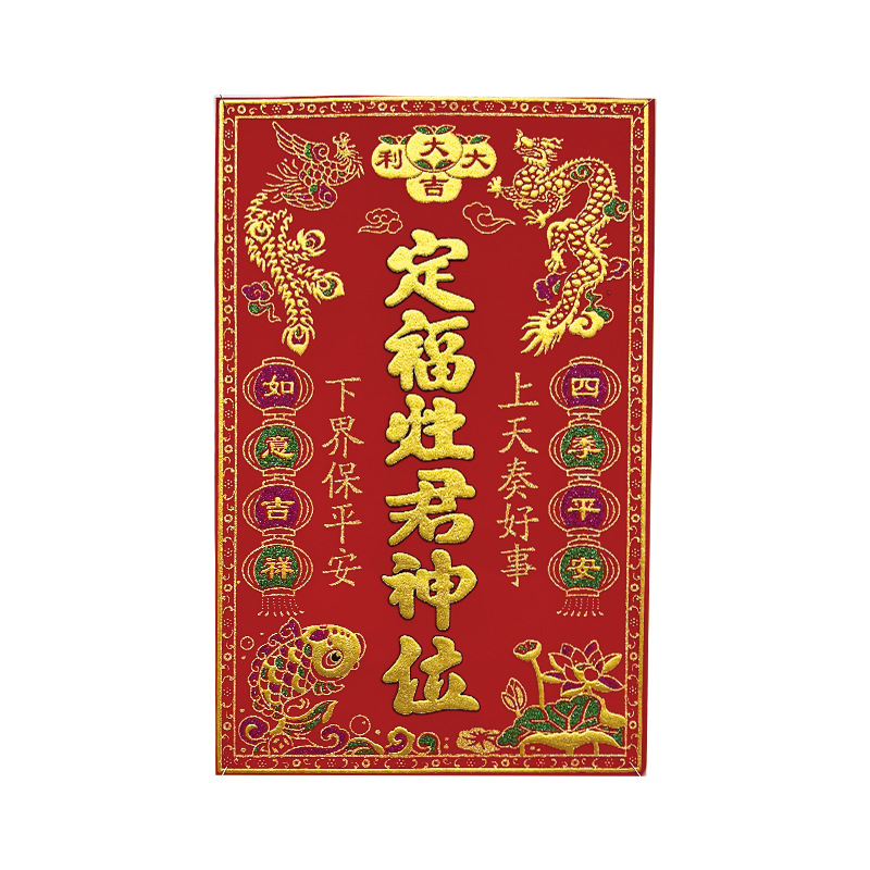 A velvet-lined print of the Kitchen God's altar, one piece (please order in multiples of 20)