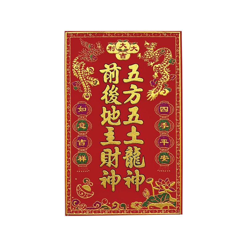 Shunfengwan flocking gold-plated paper door god of wealth land god of wealth blessing god of heaven blessing character door sticker wholesale