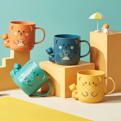 New cartoon plastic mouth cup for children, cute toothbrush cup with bear 3D design, for students' restroom toothbrush cups