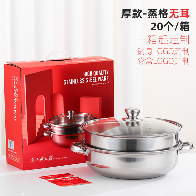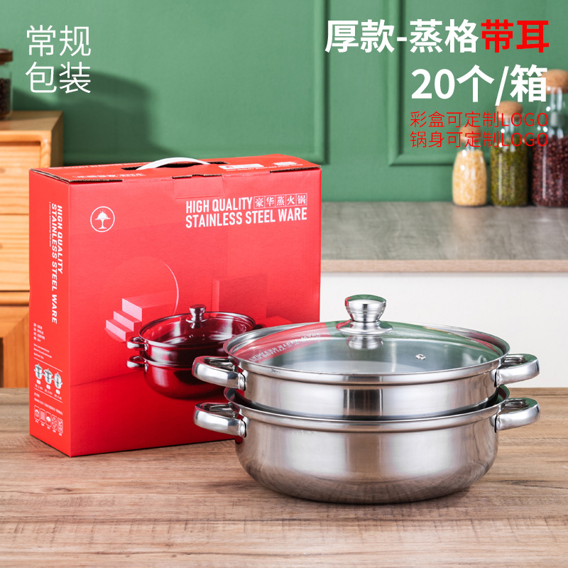Thickened stainless steel steamer two-layer double-layer soup steamer 28CM large capacity steaming soup pot hot pot practical gift pot