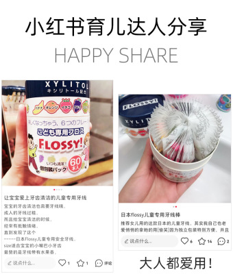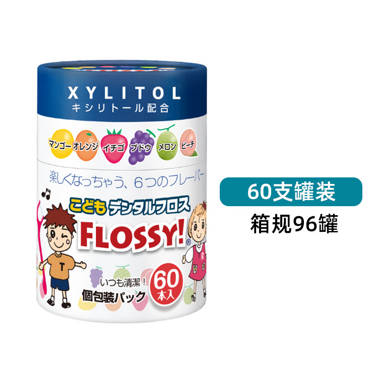 Licensed Japanese Flossy children's dental floss fruity flavor baby teeth cleaning special color cans 60 pieces