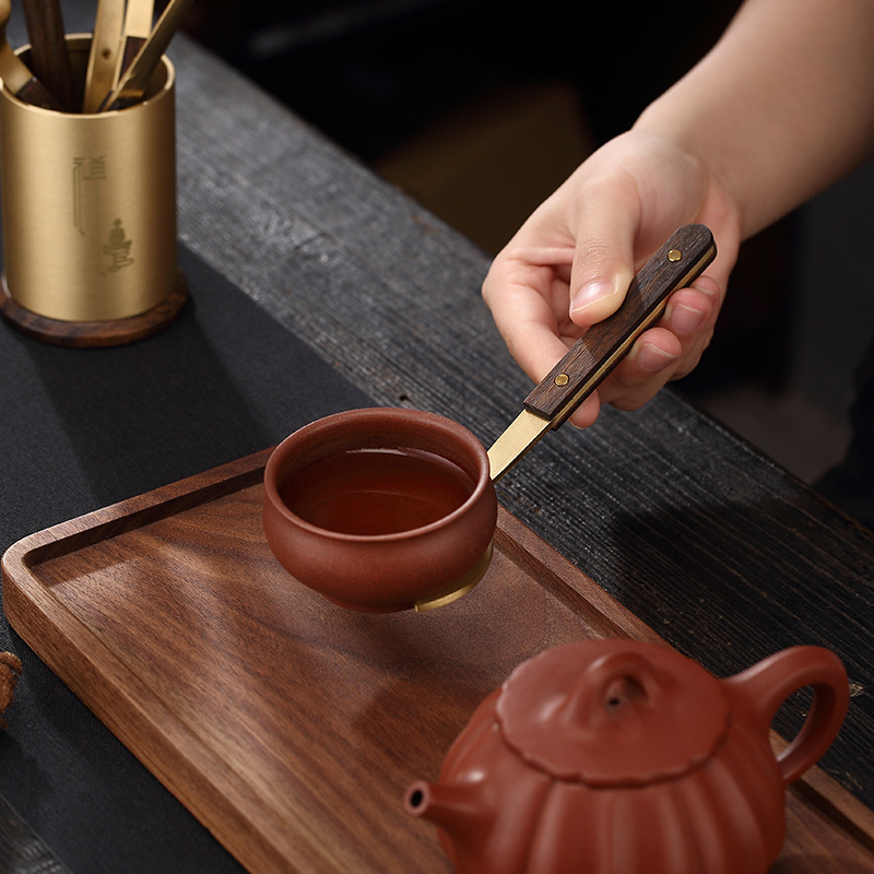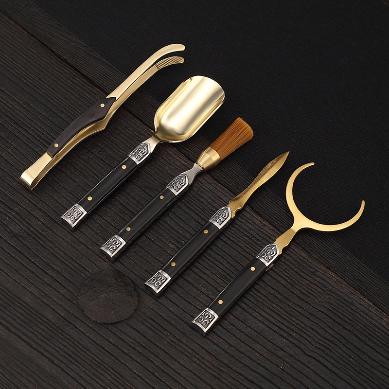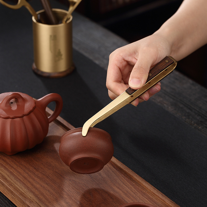 Brass Tea Ceremony Six Gentlemen Copper Wood Tea Tongs Tea Knife Tea Scoop Gongfu Tea Set Accessories Cup Fork Tea Pot Riser Tea Art Accessories